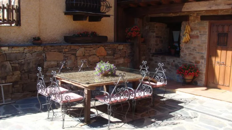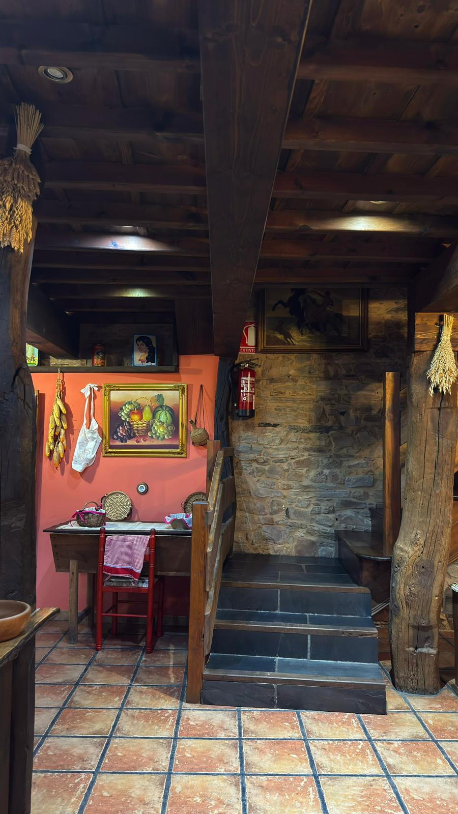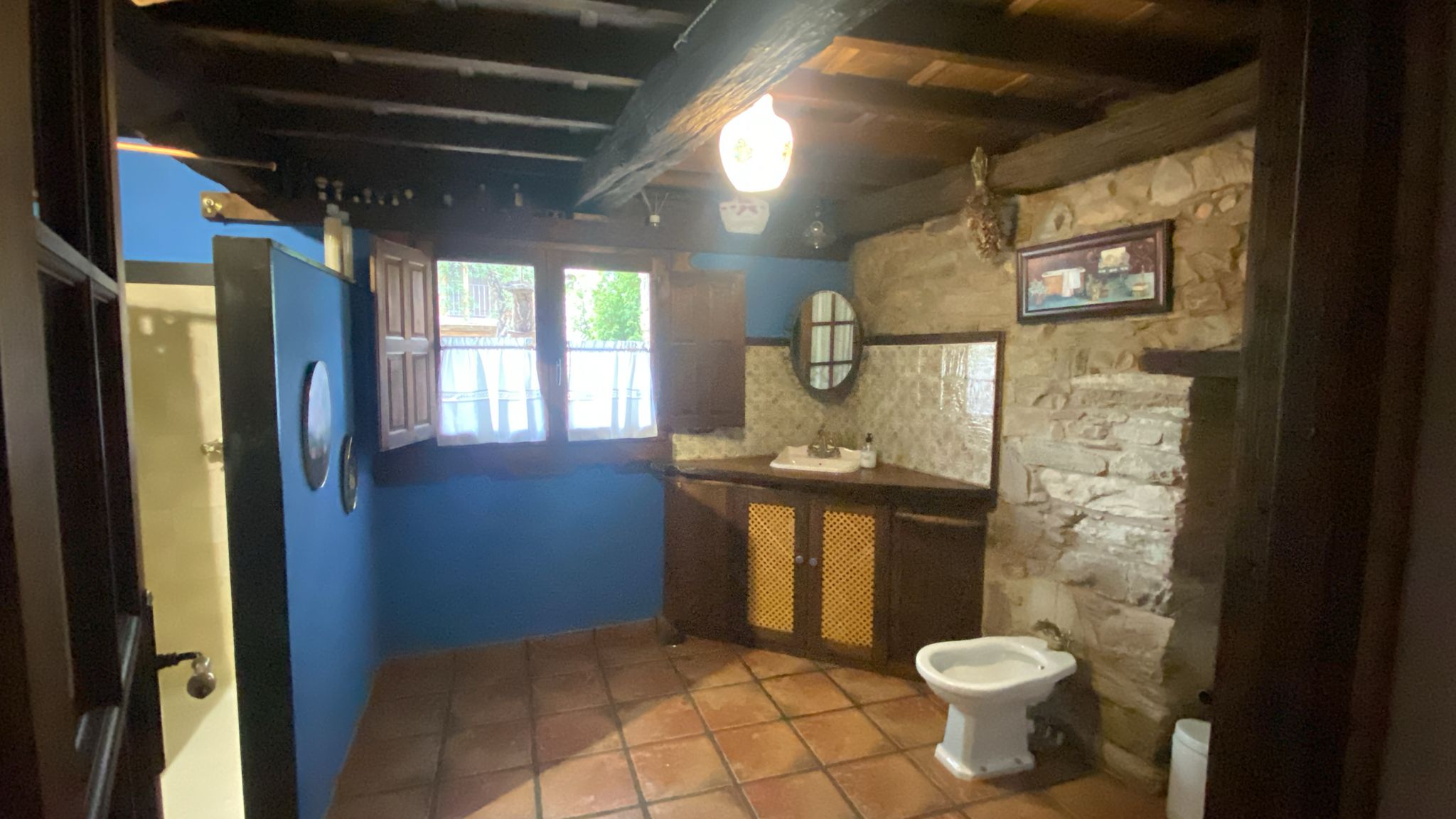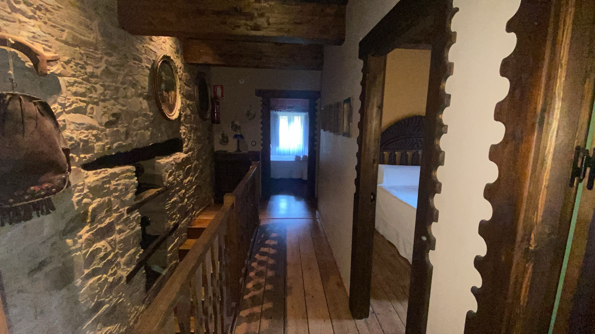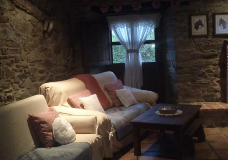 Estancia amplia y luminosa, donde las paredes originales de piedra y el mobiliario de maderas nobles crean una atmósfera cálida y auténtica.